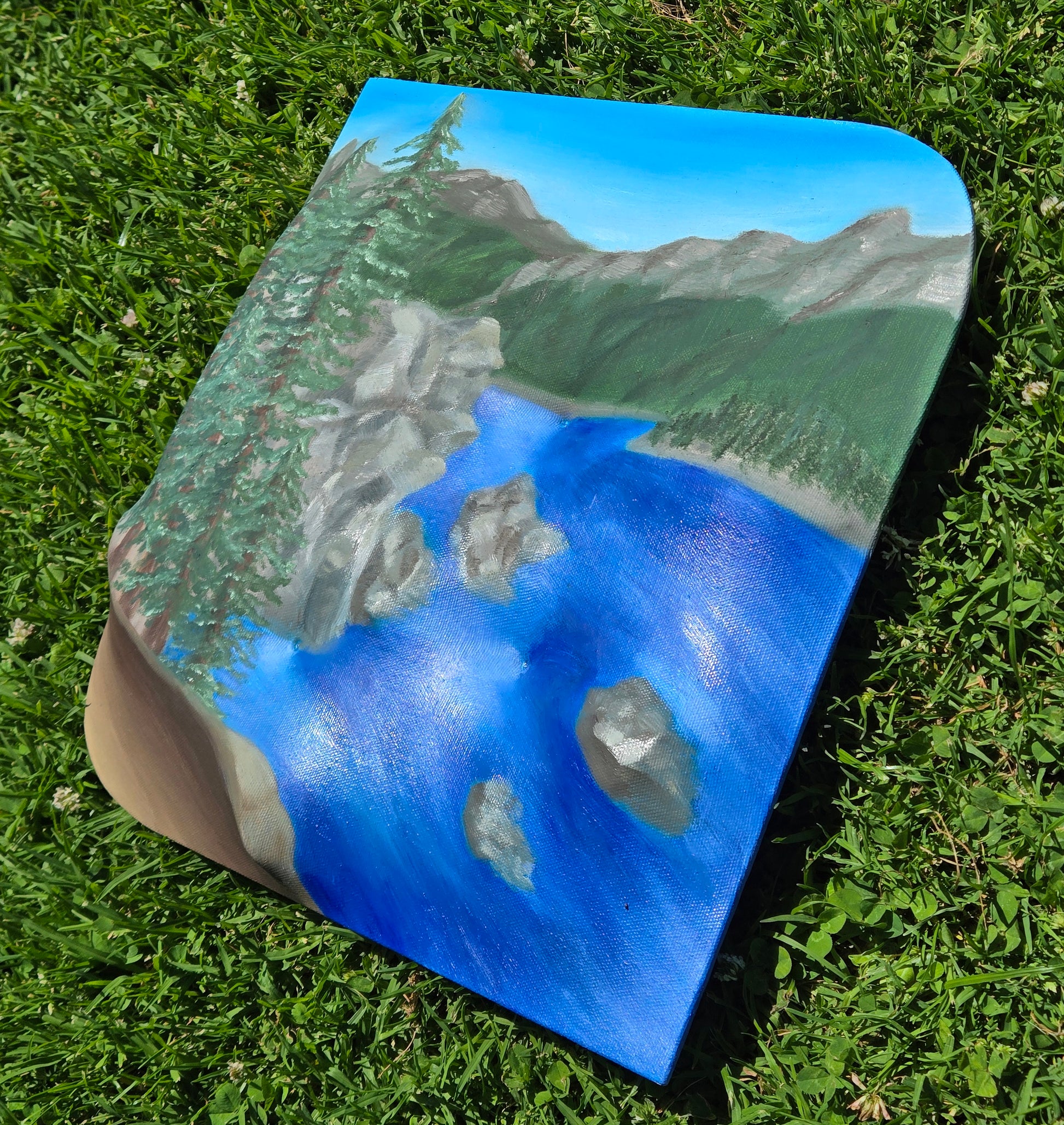 I LOVE my 3D canvases, but I wasn't sure how an actual image like a landscape or a still life would look with the 3D surface. Turns out, it works really well for landscapes! Doesn't it make you want to just dive in? I want to grab a bunch of friends, pile into the car and drive until we find a lake or river deep enough to jump in. Preferably one with crisp, cool mountain air rolling by in the morning and the sun shining down warmly in the afternoon :)