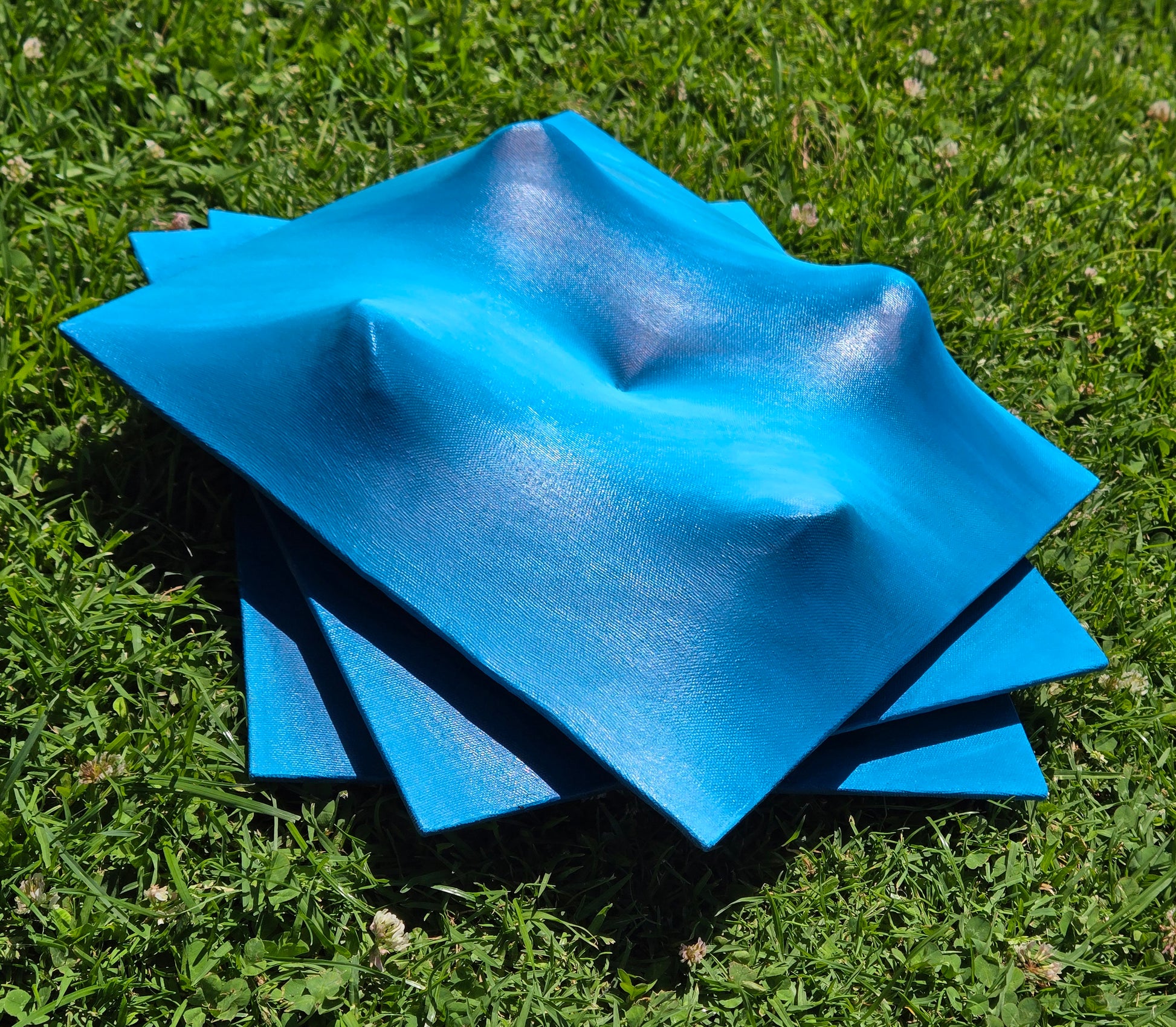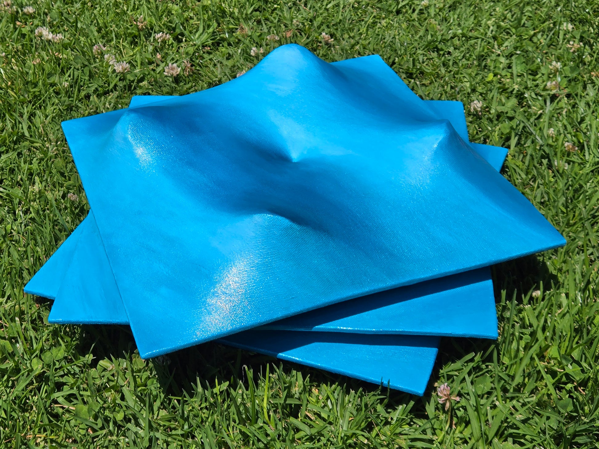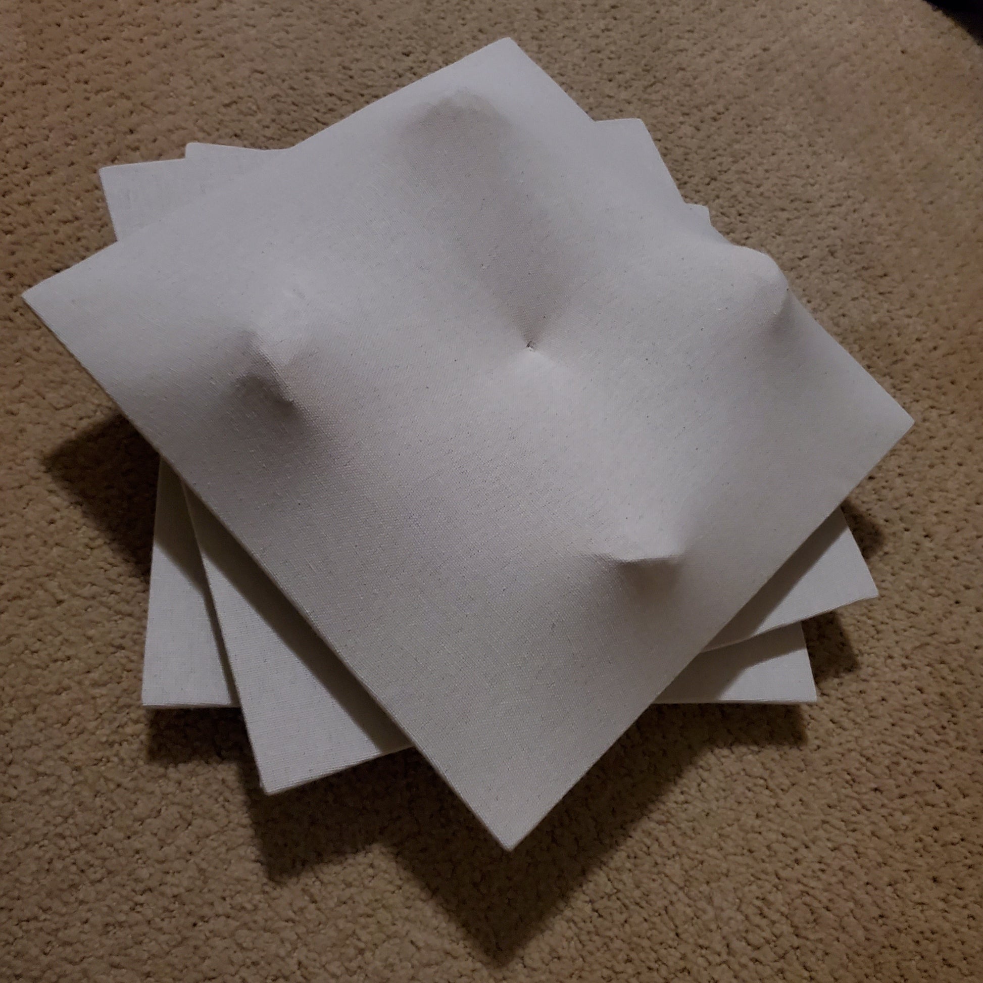 This idea has been niggling away at me for a while now. I could feel it pulling at me and it kept going round and round in my head. Yes, I could make a 3D canvas painting, but could I stack it and make it come off the wall more? With a bit of trial and error, I figured it out! And I'm honestly pretty happy with it! The sheets of masonite are all arranged on top of each other spiraling out, and all of the elements in this repeat except for one central point in the middle for my take on a Radial Array.