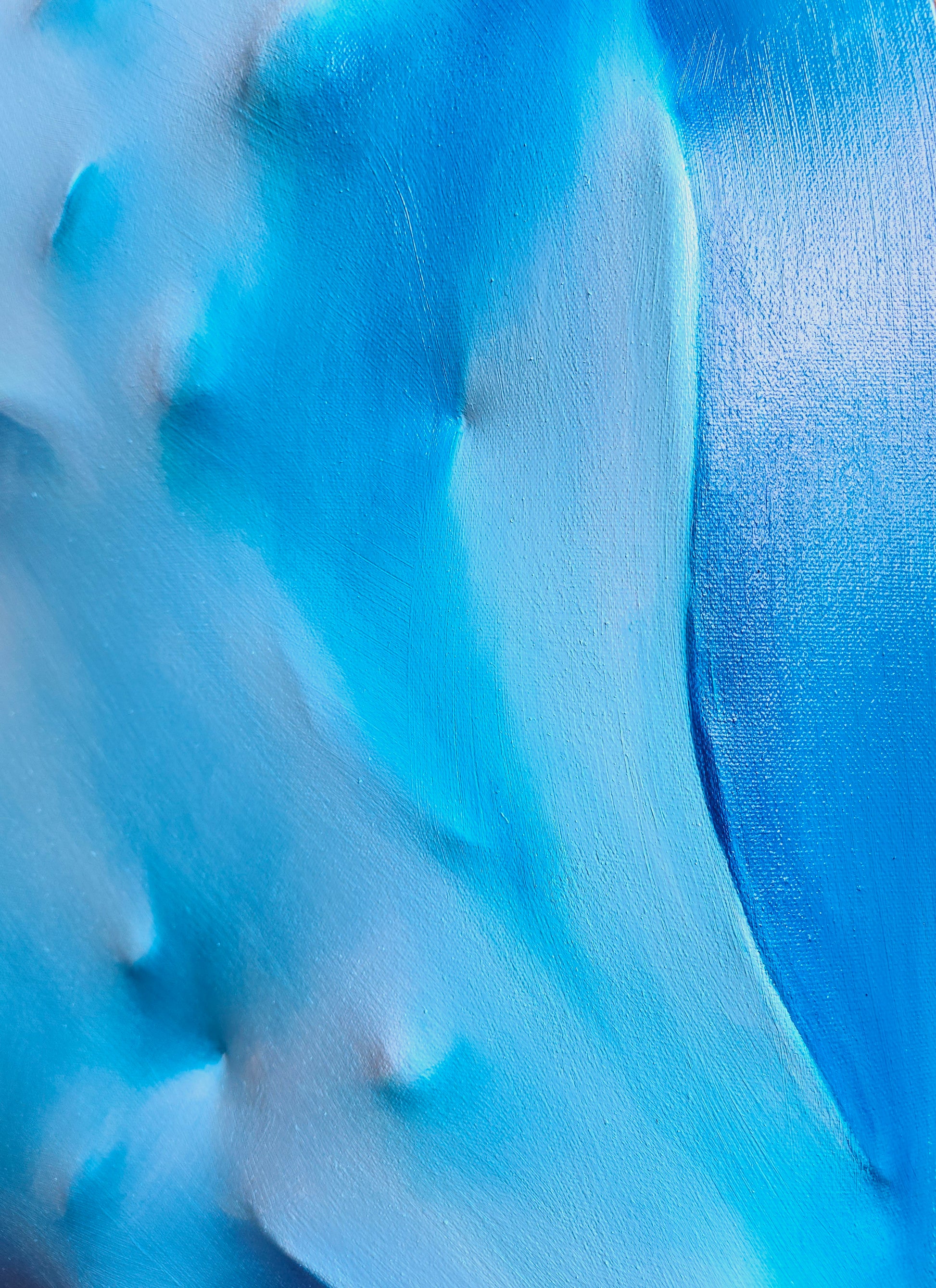 Dreams and possibilities and untold adventures lies ahead. The layers below the surface of this piece add a rich texture and color. To me, it feels energetic and playful, like a Sea Breeze dancing and leaping from crest to crest :) It's got gorgeous deep blues that swirl into a turquois green. It reminds me of the colors of the sea with a very light blue breeze dancing across the surface.